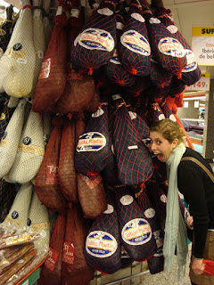 going out for tapas, seeing Paleau Guell (another work by Gaudi), and the Paleau de la Musica, all of which I had yet to see so that was great. It was good to see a friendly face as well, and be fed :). We went to a tiny hole-in-the-wall restaurant in the old part of town, and I'm sure it had been there for over 500 years. We ordered an assortment of hams, tapas, and cheeses. The waiter told me "you sure eat a lot."
